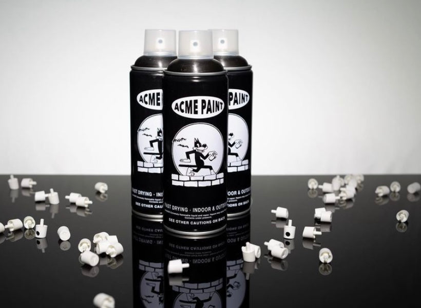 ACME Spray paint , the low-cost, high-performance graffiti paint you've been searching for, now available exclusively at Art Primo. Each can of ACME is UV-resistant, fast-drying, highly opaque, and fitted with a variable pressure female valve system. ACME cans are equipped with a classic LEGO CAP