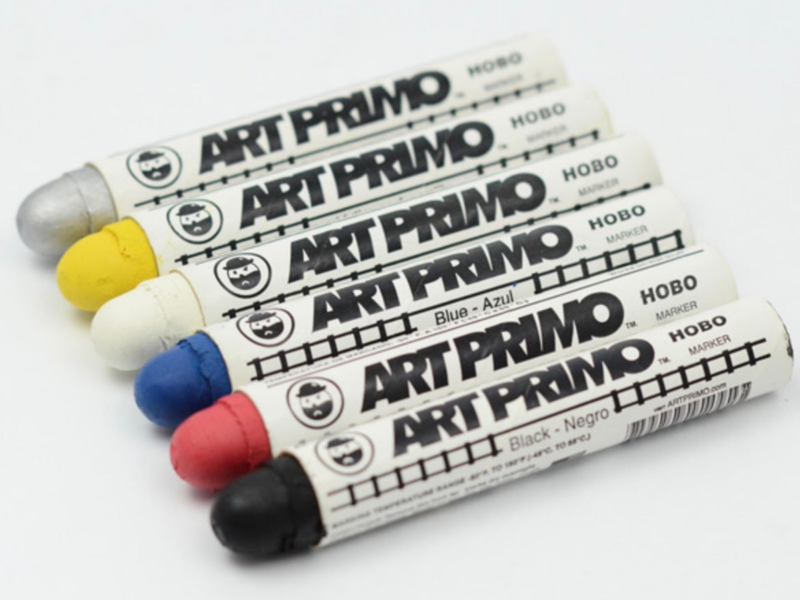 Art Primo HOBO markers are solidified paint stick markers which will write on the most amount of surfaces of any solid marker including rough, smooth and wet, metal, wood, glass and concrete. It can even write on grease and dirt. Dapper Hobo! Catch streaks, travel the world, eat beans outta a can and live a carefree life!