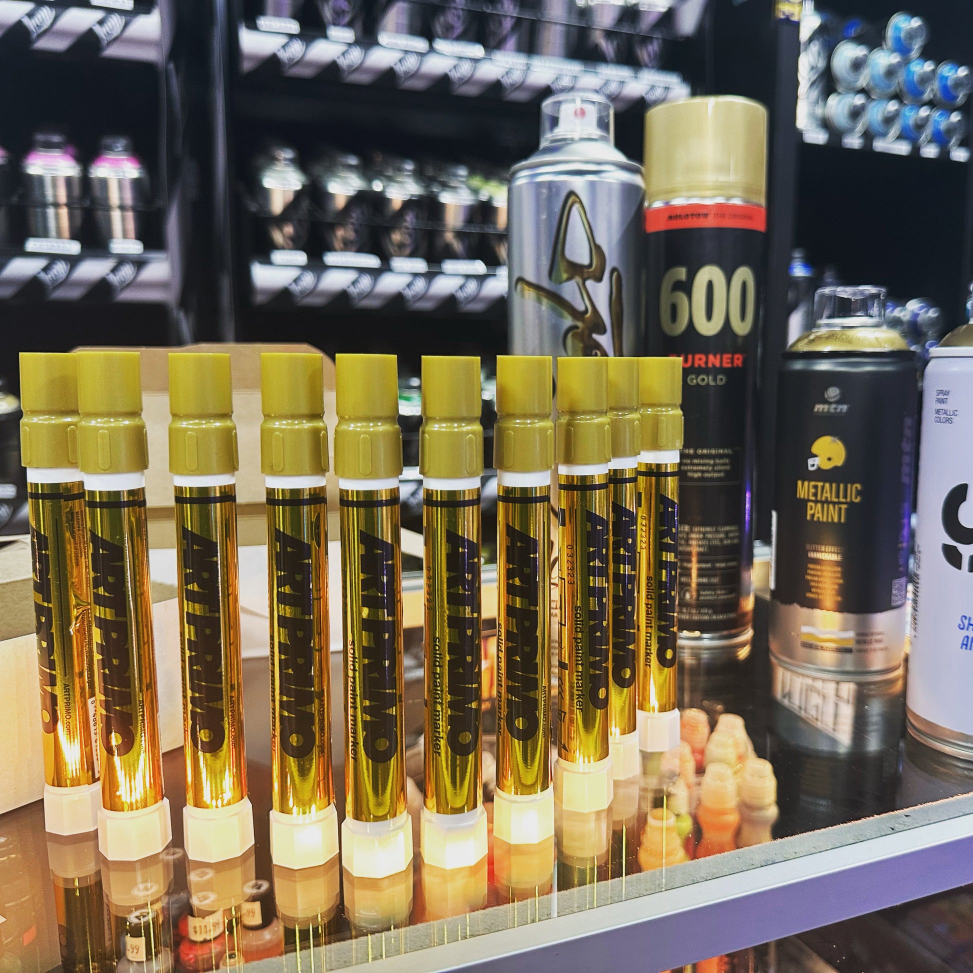 Join us in welcoming the first GOLD Solid Paint Marker EVER! Intensely metallic and highly permanent, our new AP Solid in Gold will have your tags blingin' above the rest. Like all of our Solids, Gold is buttery smooth and offers superior UV-and-weather resistance. Made in the USA