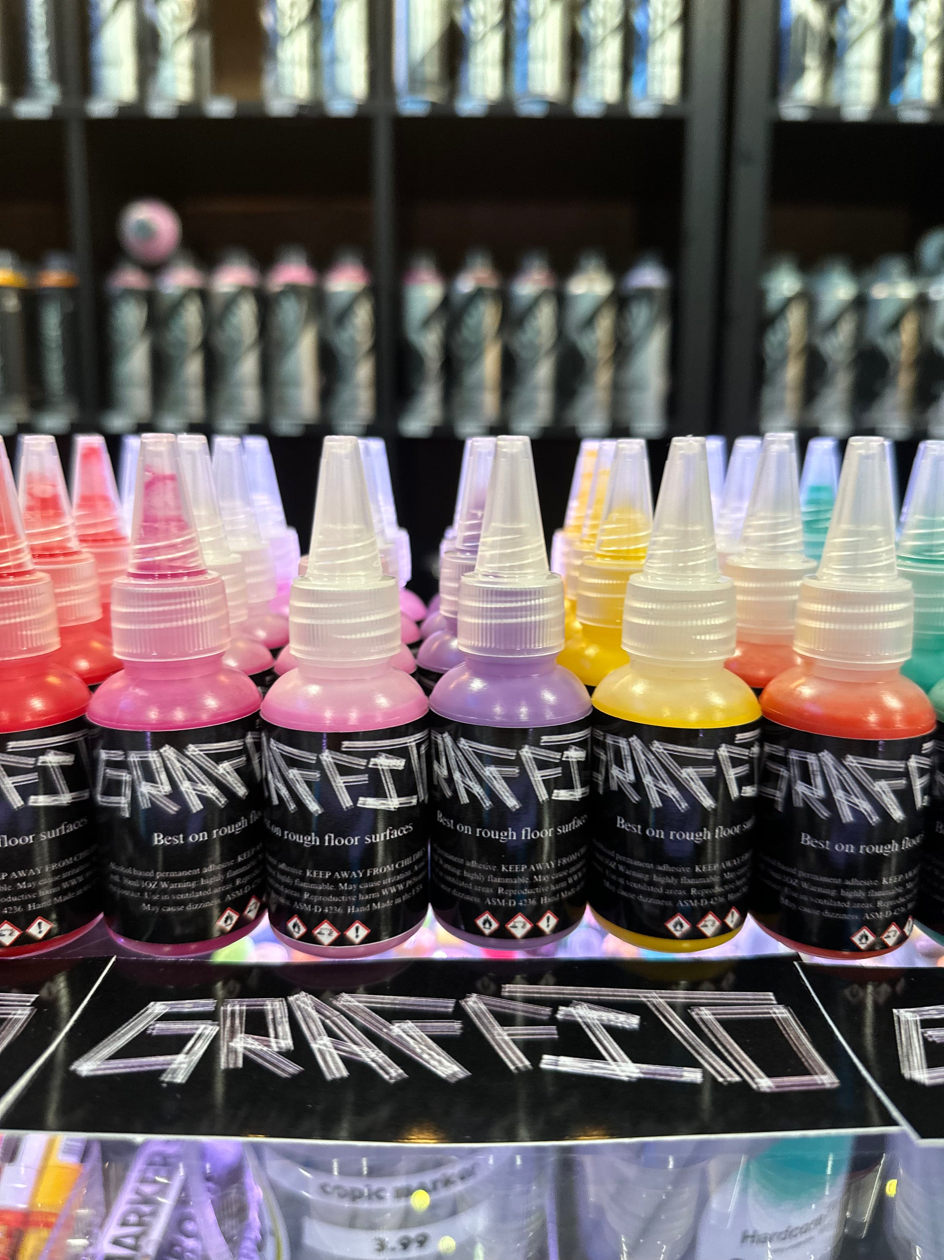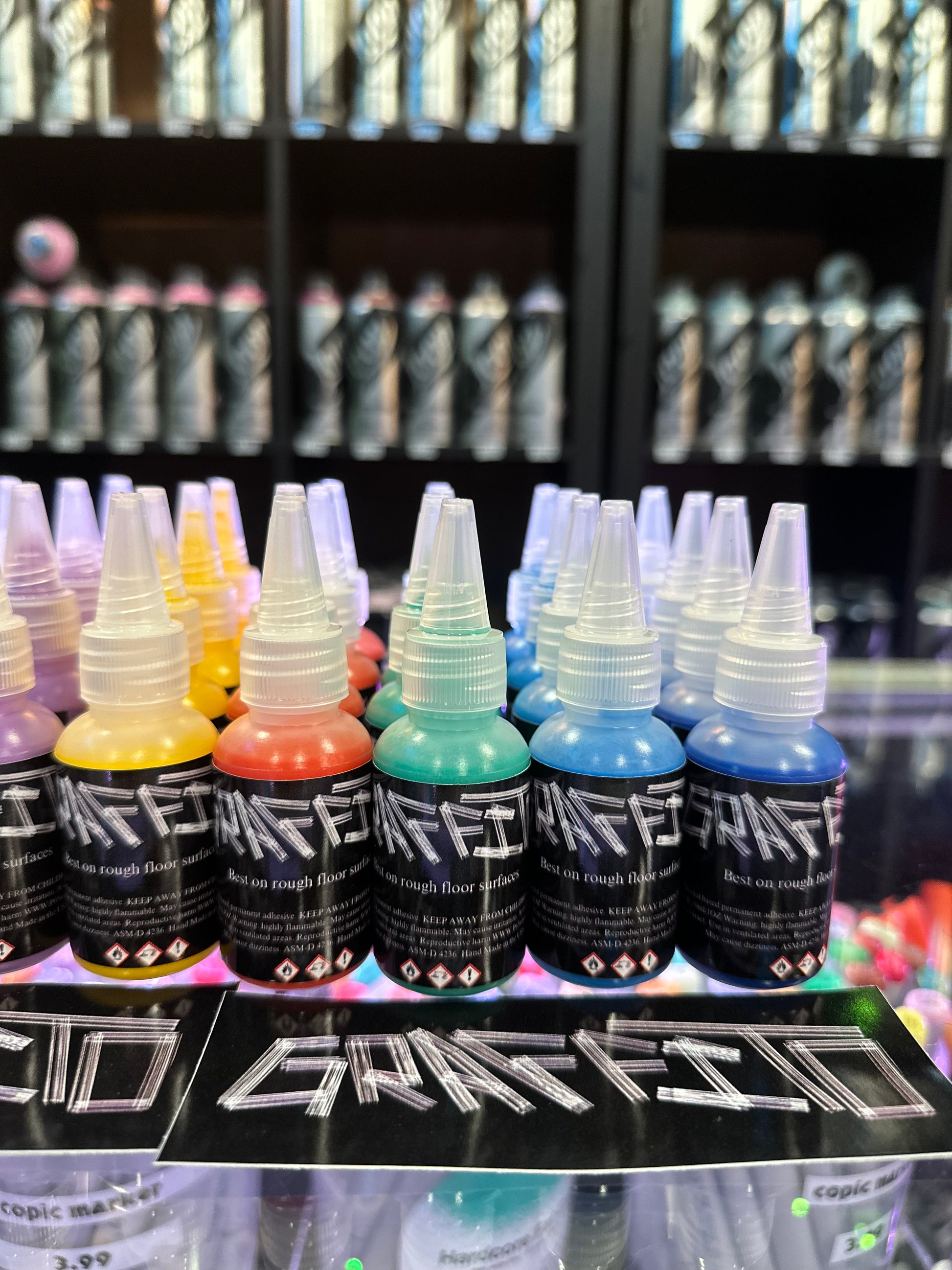 The “Graffito” paint marker is the perfect choice to write on all rough floor surfaces. Coming in a 30ML squeezable bottle with a wide range of colors you won’t be disappointed with.