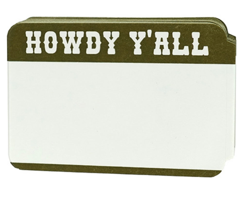 HOWDY International Blank Stickers Greet your friends from with around the world with our International Hello series of stickers! This HOWDY YALL set of paper-front stickers is rodeo-ready in olive green print and backed with industrial-strength adhesive. 100pcs per pack. Made with pride in the US of A.