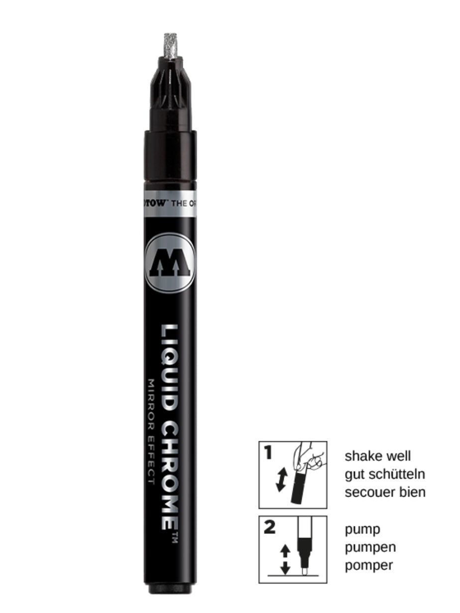 The one and only liquid chrome is now available with a 3 mm calligraphy tip, pefect for lletterings, tags and the best mirror effect on smooth and non-absorbent surfaces.