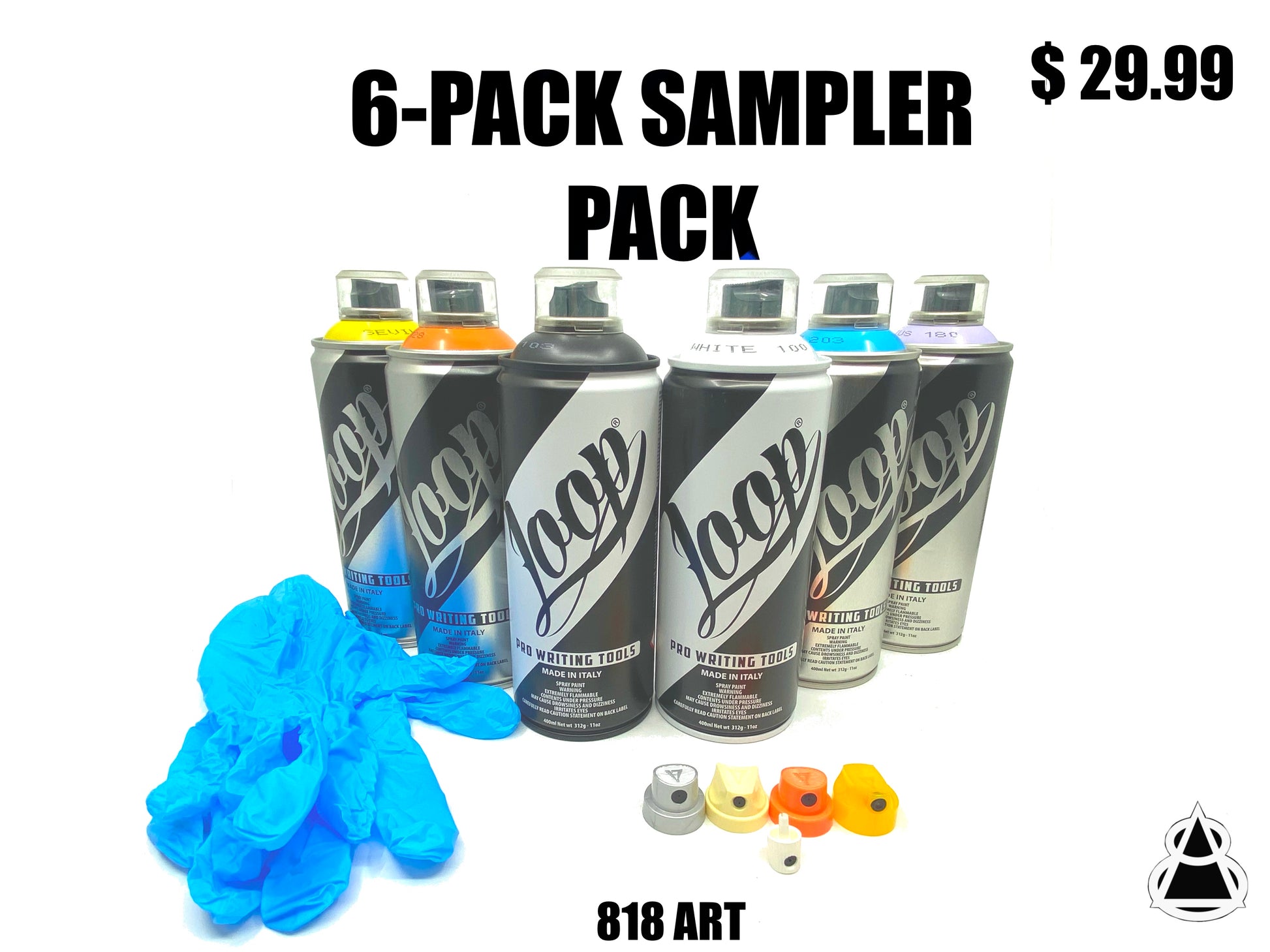 Test out the Loop SPRAY PAINT ! Medium Output Acrylic Formula with this awesome pack! Medium pressure paint allows you to paint consistent with full coverage- great for bombing, tagging and perfect piecing. Pack includes pre-assorted colors-no color requests or substitutions, please.