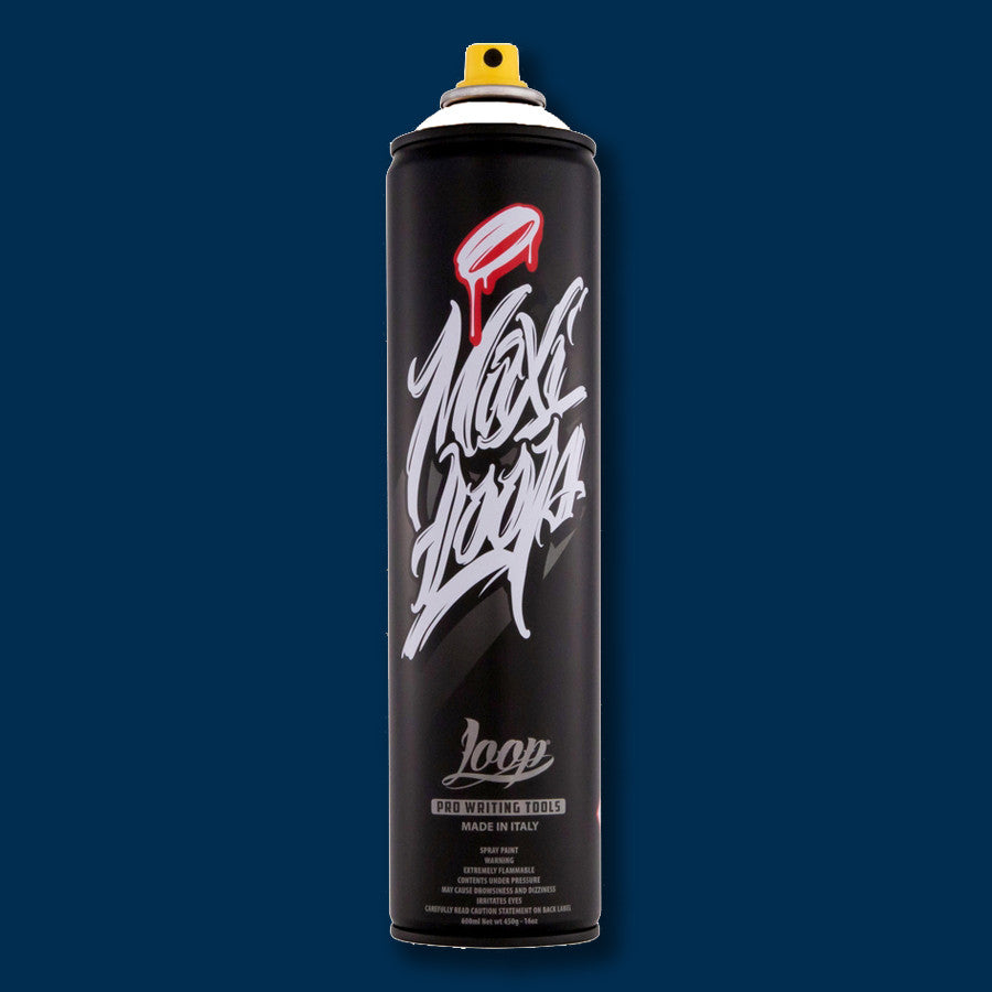 Loops Maxi spray paint is perfect for filling large areas quickly. 600ml high-pressure spray cans filled with quick drying, high covering acrylic based paint designed and developed for graffiti and street artists but is of course also suitable for hobby and decoration work. The Loop Maxi spray cans has the same extra soft valve as the 400ml cans which gives you perfect can control. Comes with a Super Fat Yellow Cap. Loop Spray Paint Maxi 600ml is available in 17 different colors.