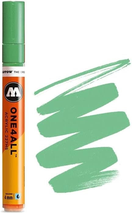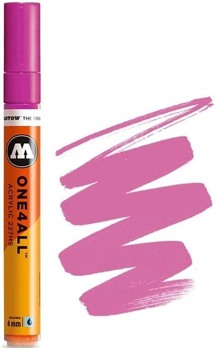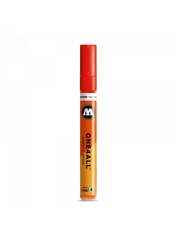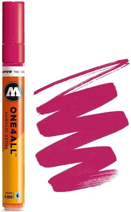 The 227 Molotow High Solid One4All Markers are designed specifically to meet the high standards of professional artists. The 227HS markers have great coverage. Molotow's patented Flowmaster Valve system allows the paint to flow evenly with more consistency than any marker of its style. This marker has a 4mm nib which are replaceable.