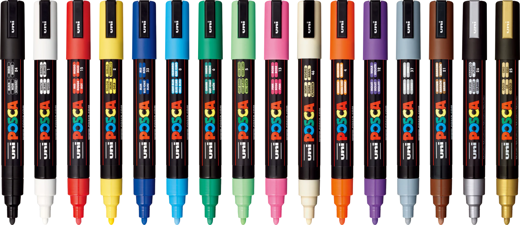 The PC-5M's versatile bullet tip offers unlimited freedom of use and adapts to all types of creation. Available in 39 colors that are mixable and layerable, the water-soluble, non-toxic ink dries quickly and can be used on a variety of surfaces.