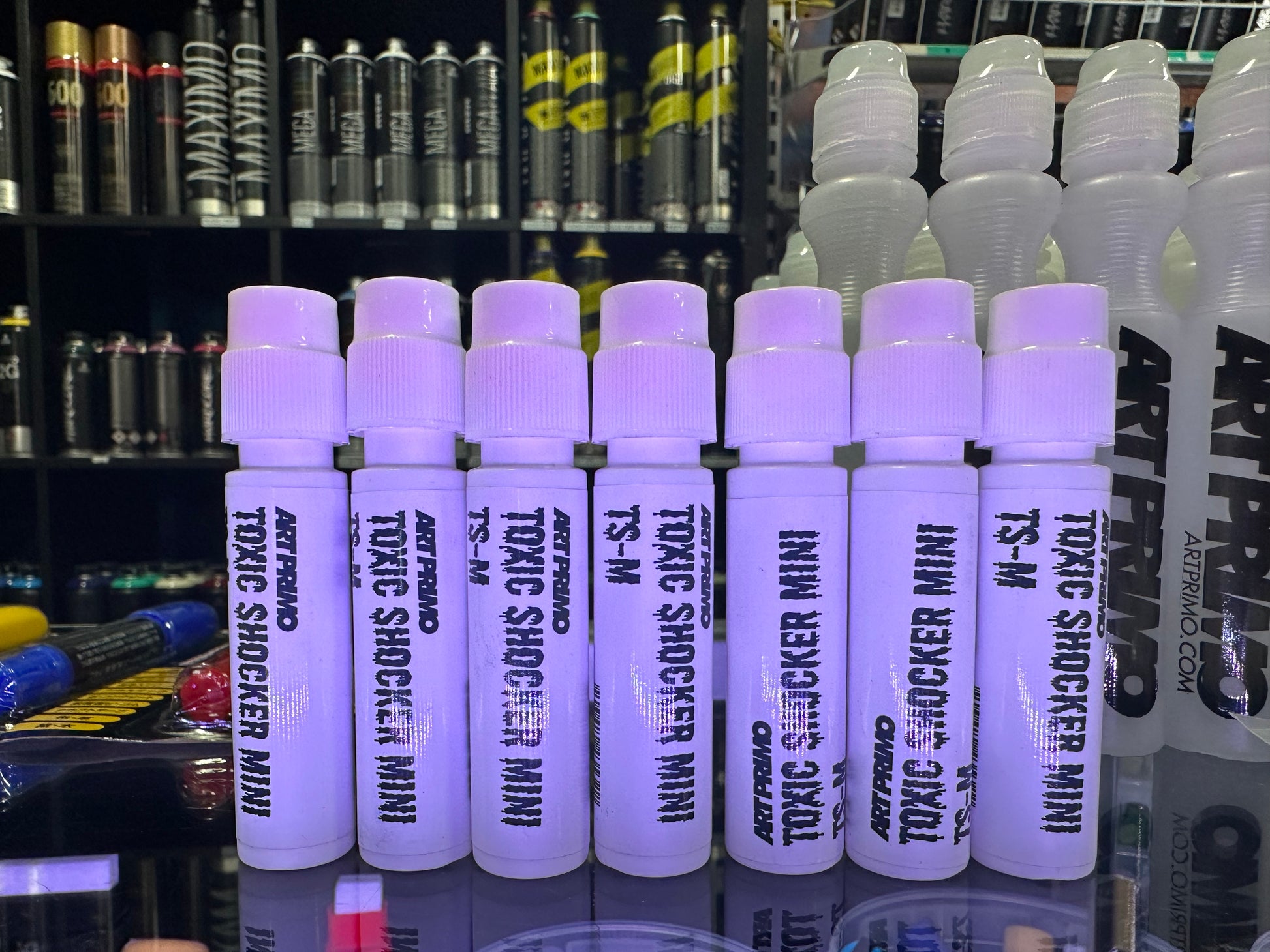 New! The TS-M is a shorter version of our best-selling Toxic Shocker Empty Mop. This mini-mop holds .25oz of your favorite ink or dye- because the marker body is not easily squeezable, we don't recommend using thicker paints. The Toxic Shocker Mini is equipped a durable 10mm felt nib. Sold empty, refillable and with replacement nibs available